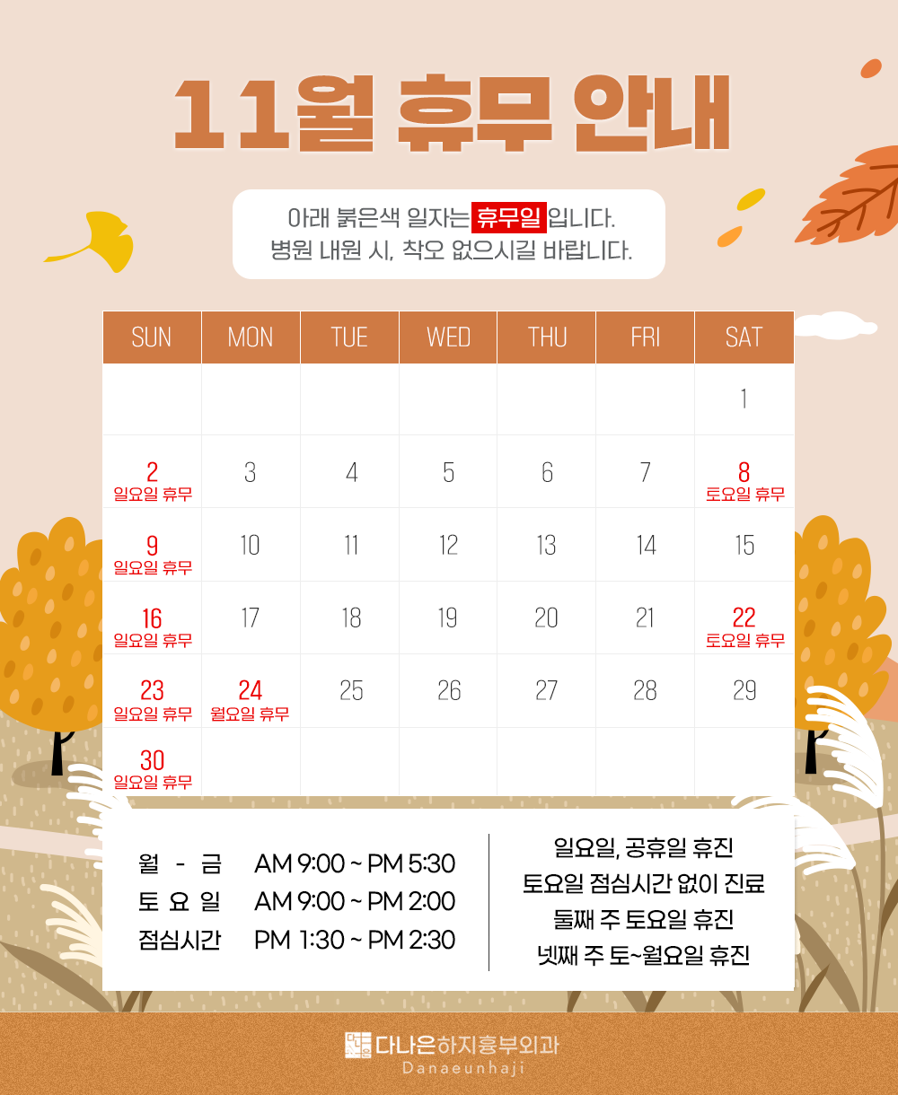 다나은하지흉부외과 25년 11월 휴진일 안내